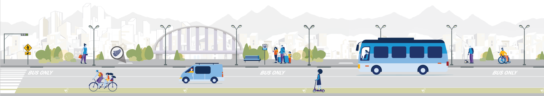 Click each icon to learn more about the types of improvements DOTI needs to make to provide an equitable transportation system that is affordable, reliable, safe, comfortable, and sustainable.